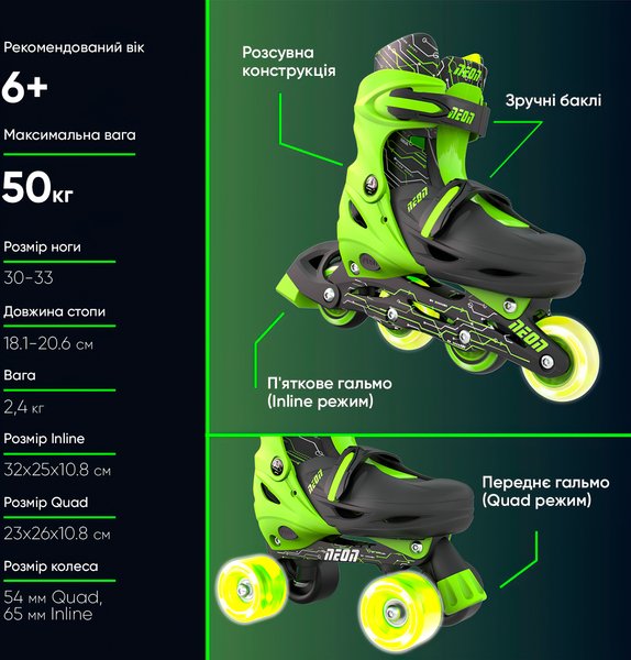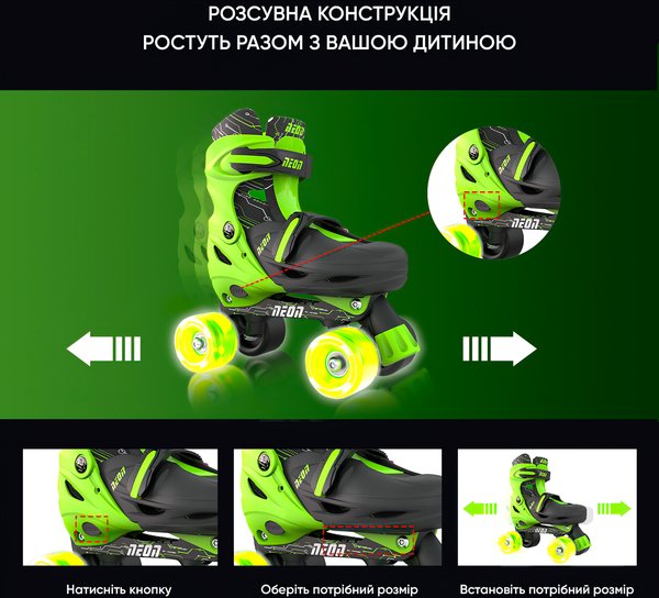 - Роликові ковзани Neon Combo Skates Салатовий (Размер 30-33)