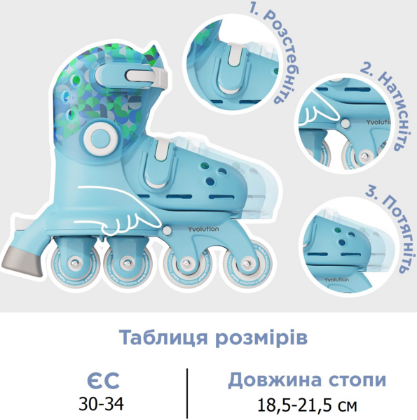 - Роликові ковзани Yvolution Twista, розмір 30-34, блакитний