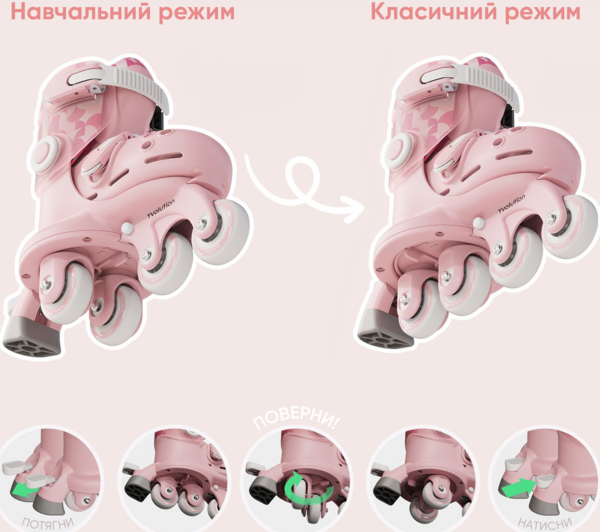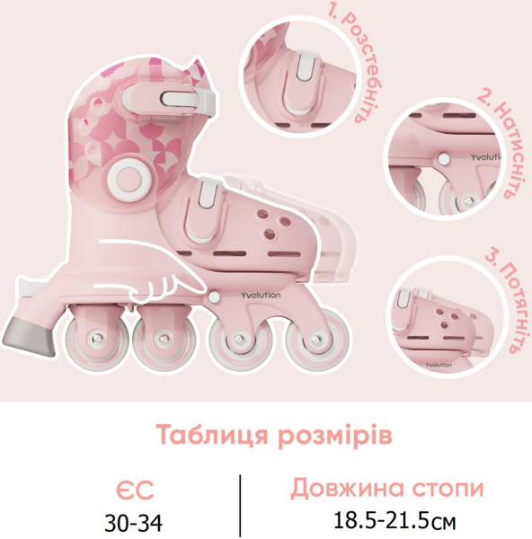 Роликові ковзани Yvolution Twista, розмір 30-34, рожевий