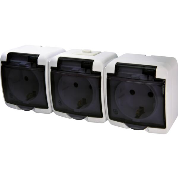 Розетка ETI RHE-3sd,3хSchuko, димчаста кришка, IP54 (4668024)