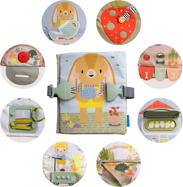 Книга допомагає розвинути зорово-моторну координацію, дрібну моторику та силу пальців завдяки різним вправам на застібання блискавок, шнурків та ґудзиків й переміщення предметів.