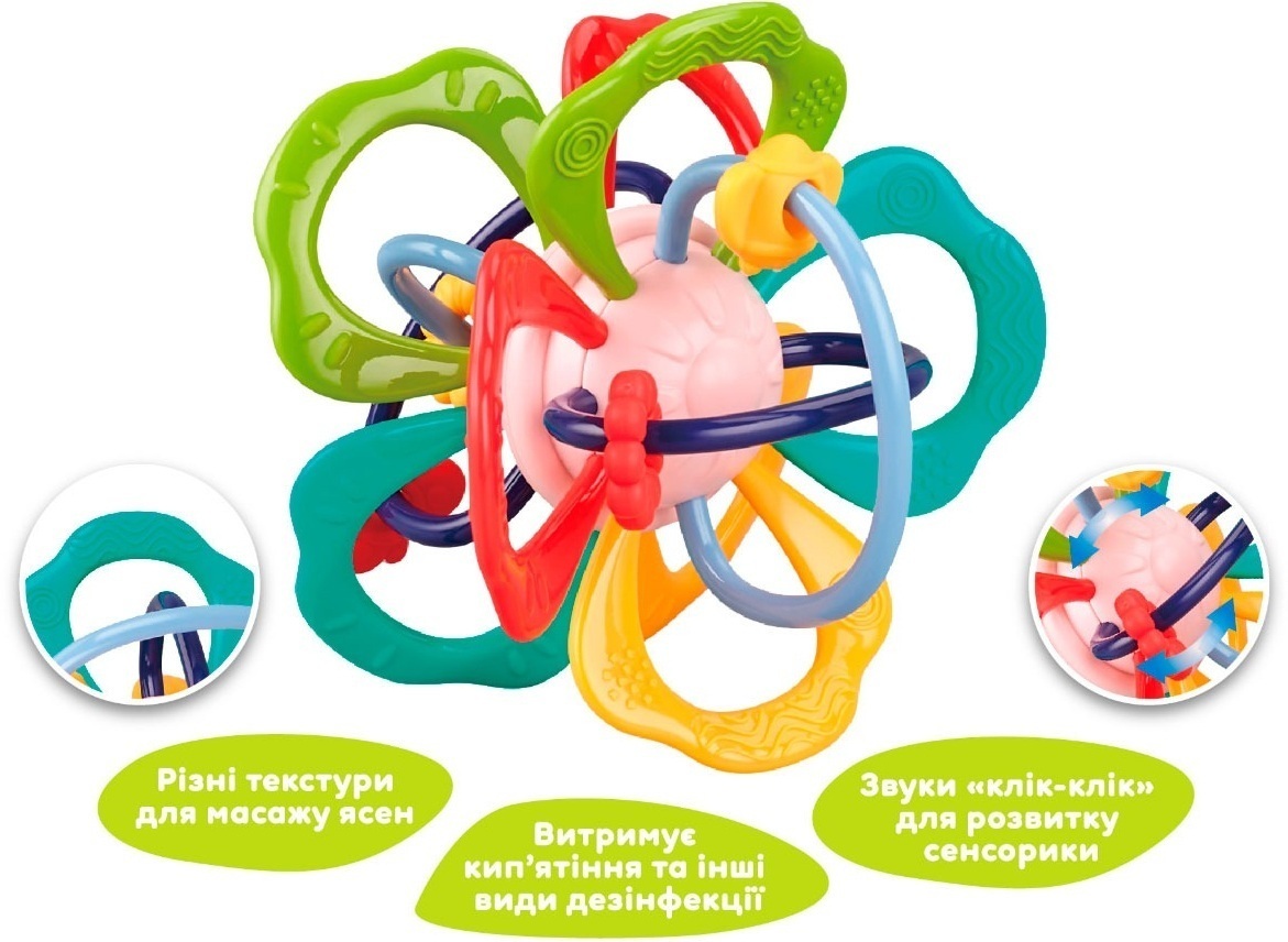 Завдяки еластичним пелюсткам дитина може кусати іграшку та масажувати ясна, щоб полегшити процес прорізування зубів.