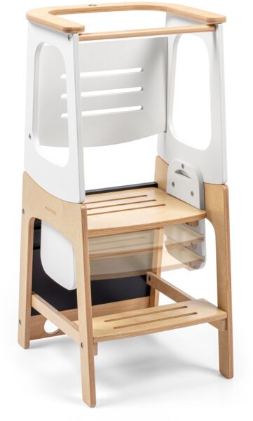 Діти можуть безпечно використовувати Toucan в режимі навчальної вежі від 18 місяців до 6 років. Створена за методикою Монтессорі, вона втілює ідею про те, що діти найкраще навчаються в середовищі, підготовленому для самостійної діяльності. Завдяки регульованій висоті, Toucan підходить для дітей від самого раннього віку і до тих пір, поки їм не знадобиться збільшення висоти. У режимі навчальної вежі ваш маленький помічник захищений від падінь завдяки задній захисній планці. Універсальність Toucan виходить за рамки дитячого віку: вежа слугує підніжкою як для дітей, так і для дорослих, забезпечуючи їй місце у вашій оселі на довгі роки.