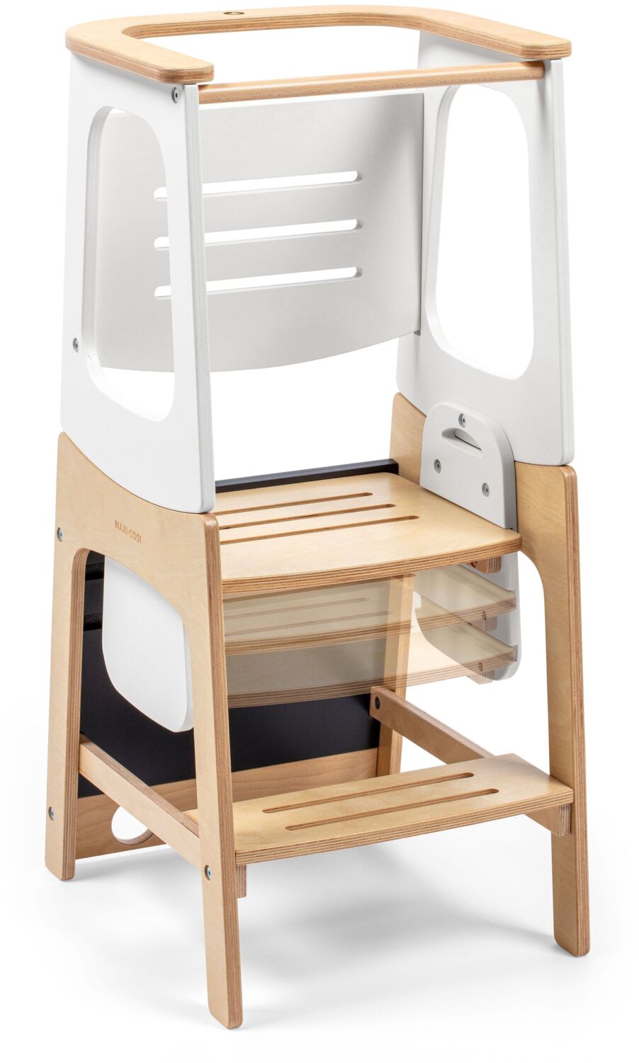 Дозвольте незалежності вашої дитини злетіти догори разом з Maxi-Cosi Toucan, навчальною вежею 3 -в- 1, натхненною принципами Монтессорі, яка дає можливість вашому малюку вчитися через дослідження. Від помічника на кухні до художника-початківця, конструкція 3 -в- 1 Toucan відкриває світ можливостей для вашого малюка. Приєднуйтесь до кухонних розваг у режимі навчальної вежі, розкривайте свій творчий потенціал на інтегрованій дошці в режимі столу та стільця, а також спостерігайте за тим, як малюк досягає нових висот, використовуючи стільчик - степер.