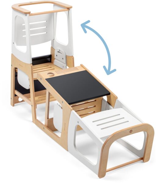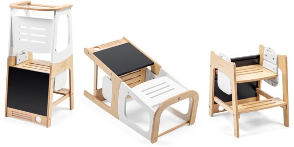 Навчальна вежа Toucan 3 -в- 1 забезпечує ідеальну платформу для вашого малюка, коли він бере участь у сімейних заходах щодо дому. Регульована висота гарантує, що ваша дитина завжди зможе безпечно і комфортно дістатися до стільниці, в той час, як вбудована дошка забезпечує творчий простір для вашої дитини. Незалежно від того, чи використовується вона в якості табуретки, чи в режимі столу та стільця, ваша дитина має власне зручне місце, де вона може розслабитися, проявити свої творчі здібності або взяти участь у тому, що відбувається навколо.