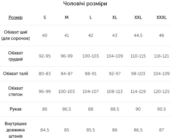 | Стать | Для чоловіків |