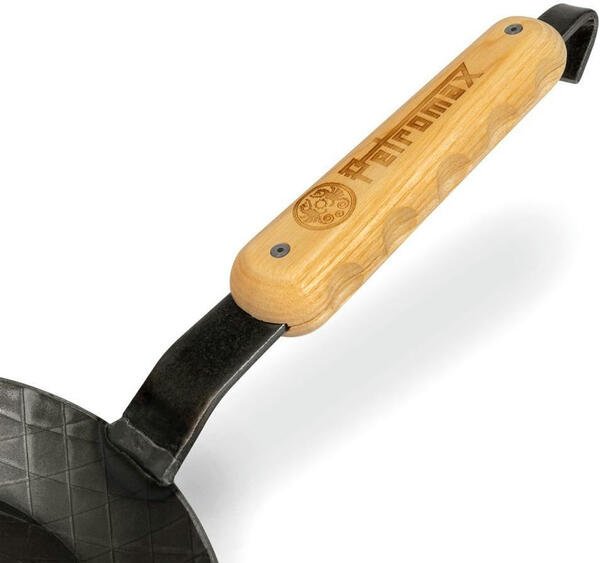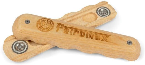 Знімне дерев'яне руків'я, що вдягається на ручку кованої сковороди Petromax Wrought-Iron Pan. Захищає руки й дозволяє впевнено маніпулювати посудиною, перегортаючи та помішуючи страви на ній. Складається з двох половин, які кріпляться до кованої основи за допомогою магнітного замка. Має ергономічну форму і зручно лежить у руці. Проолієна натуральна деревина приємна на дотик.