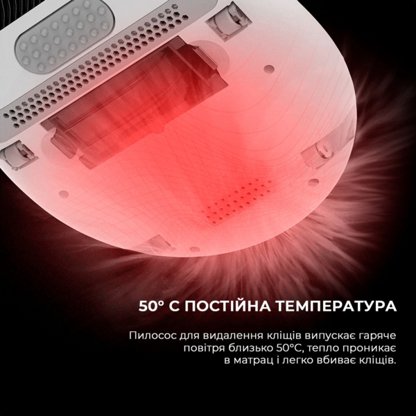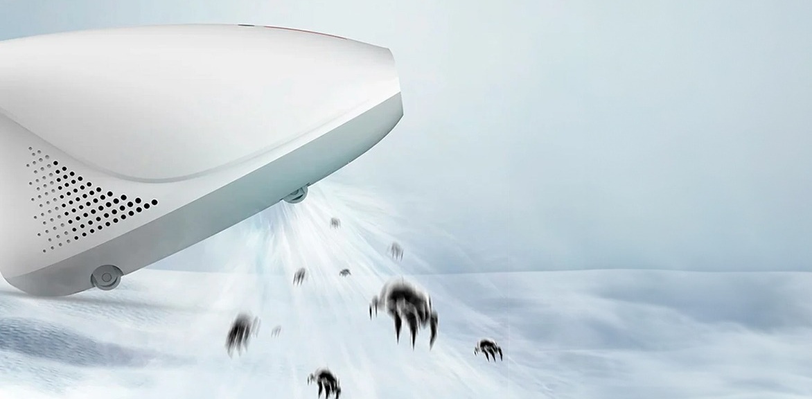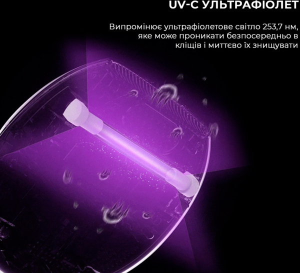 Пилові кліщі, бактерії та віруси непомітно причаїлись у вашому ліжка. Але ви можете усунути до 99,9 % шкідників та глибоко дезінфікувати поверхні без використання хімічних засобів. Один рух пилососа — і вбудована кварцова лампа випромінює ультрафіолетові хвилі (253,7 нм), які порушують структуру ДНК кліщів. Їх розмноження зупиняється, оскільки ультрафіолет знищує не лише дорослих особин, а й личинки та яйця.