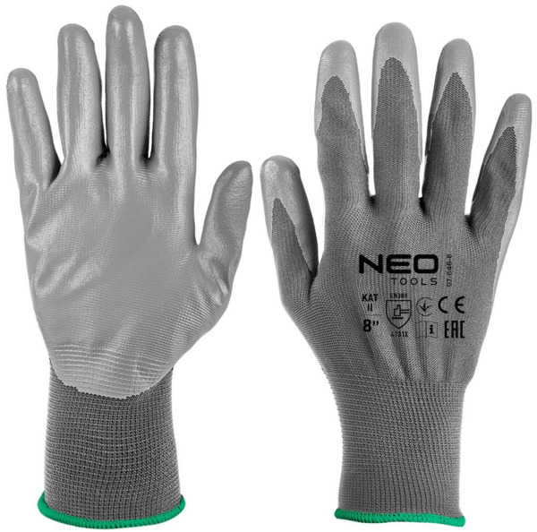 - Рукавички робочі Neo Tools поліестер з поліуретановим покриттям, р.8, сірий 12шт