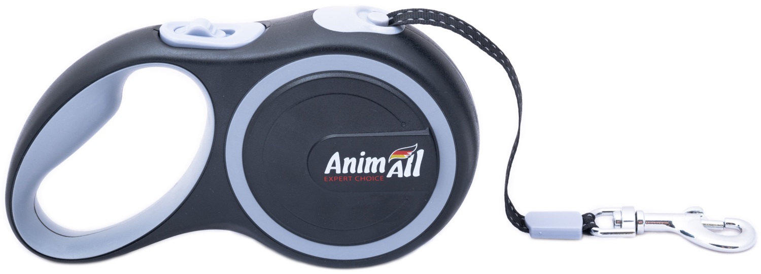 - Рулетка-повідець AnimAll до 25 кг/5 метрів М сірий-чорний