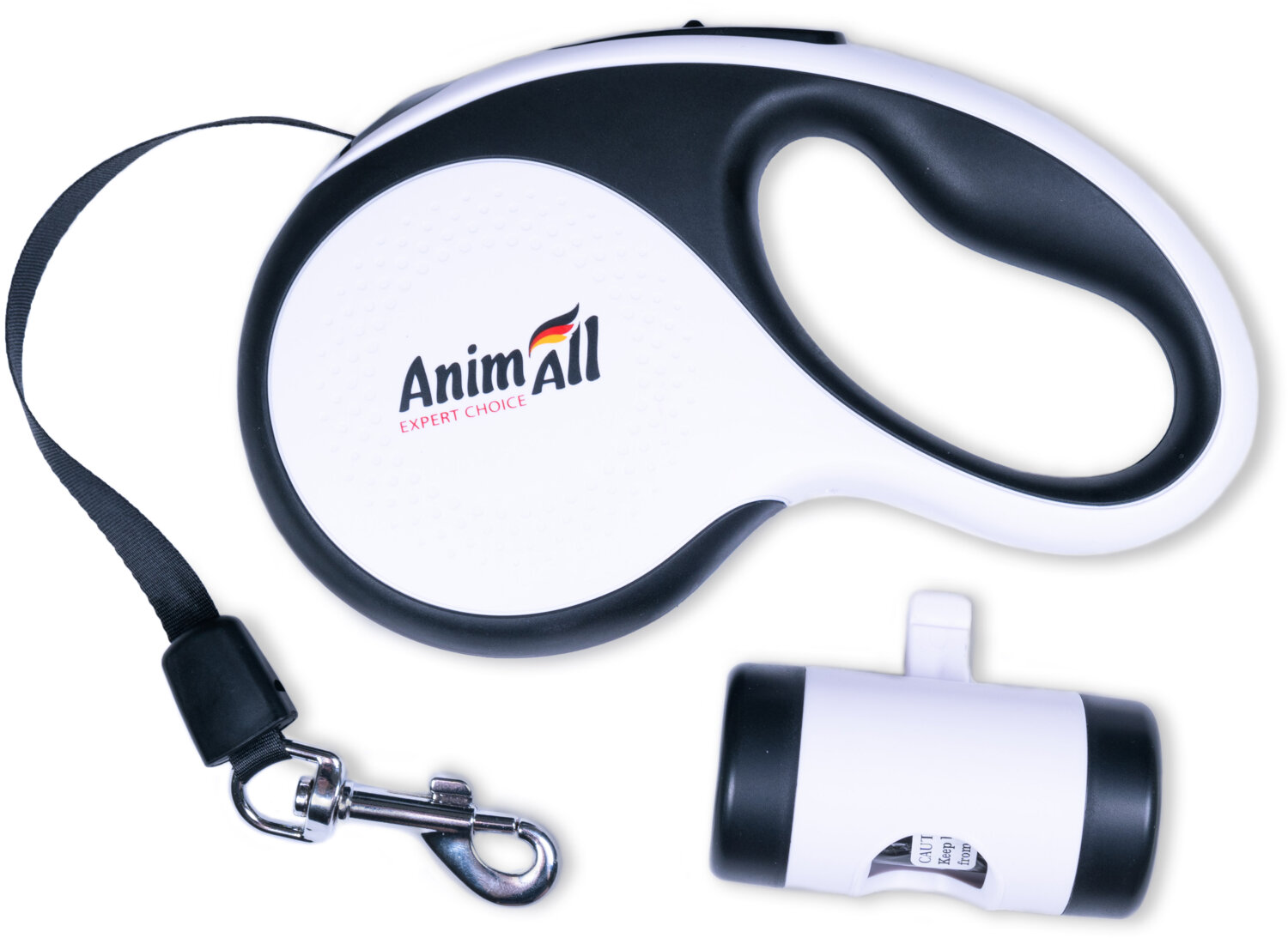 Рулетка-повідець AnimAll з диспенсером L до 50 кг/5 метрів біла MS7016-B