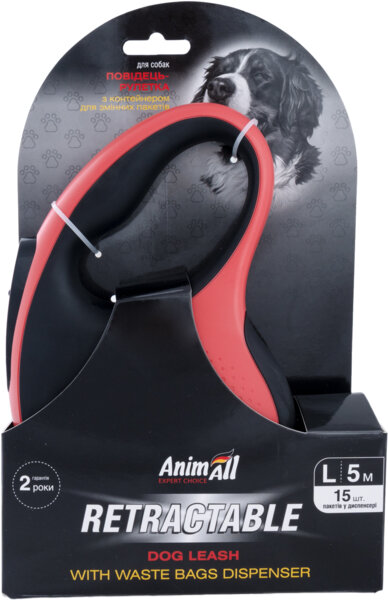 - Рулетка-повідець AnimAll з диспенсером L до 50 кг/5 метрів червона MS7016-B