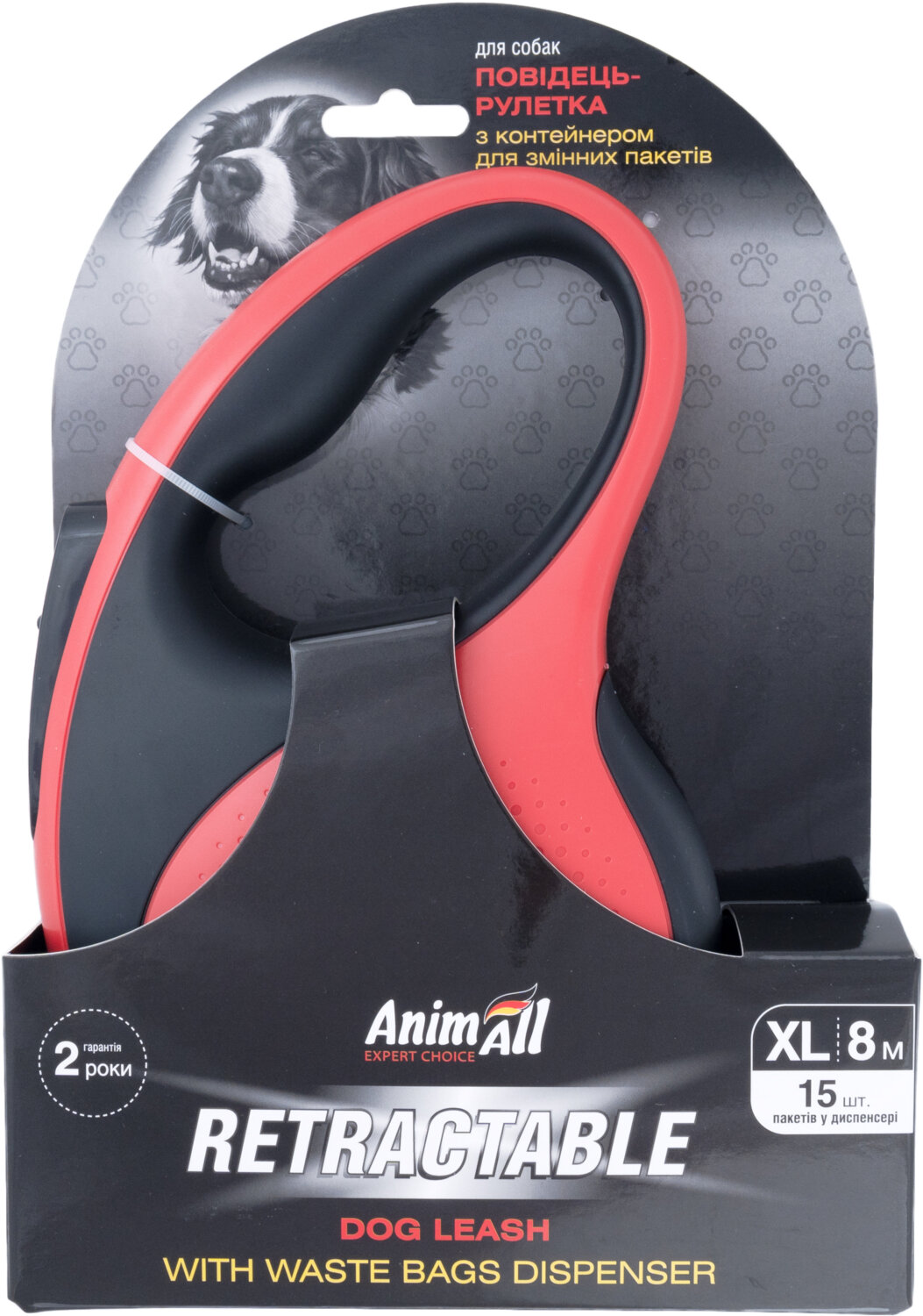 - Рулетка-повідець AnimAll з диспенсером XL до 50 кг/8 метрів червона MS7016-B