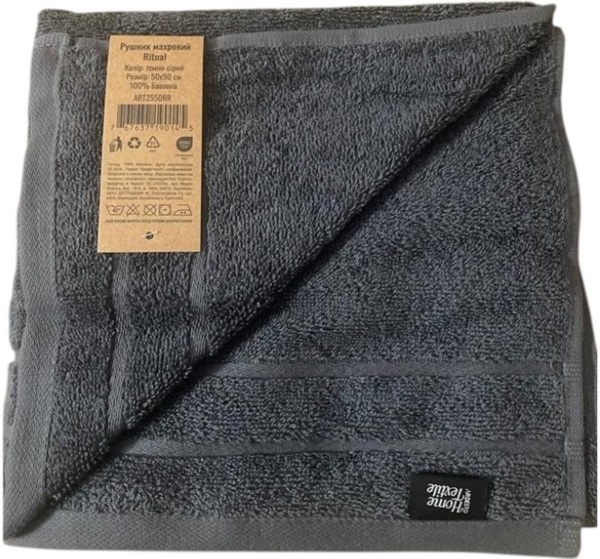 - Рушник махровий ARDESTO Ritual 50х90см, 100% бавовна, сірий темний (ART2550RR)