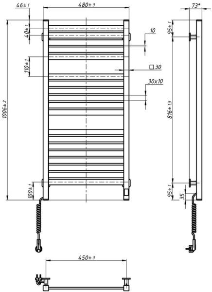 | Комплектація (можливі зміни в різних поставках) | Документація, Кріплення – 4 шт., Сушарка для рушників, Шестигранний ключ |