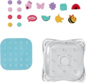 Бджілкою, метеликом, кольоровими кружками, бананом та іншими символами.