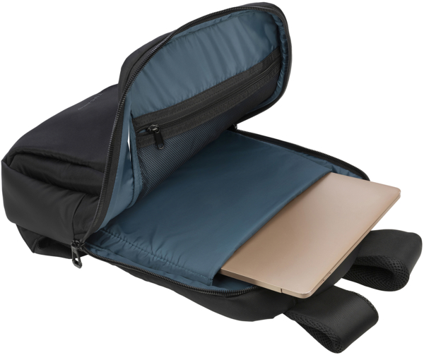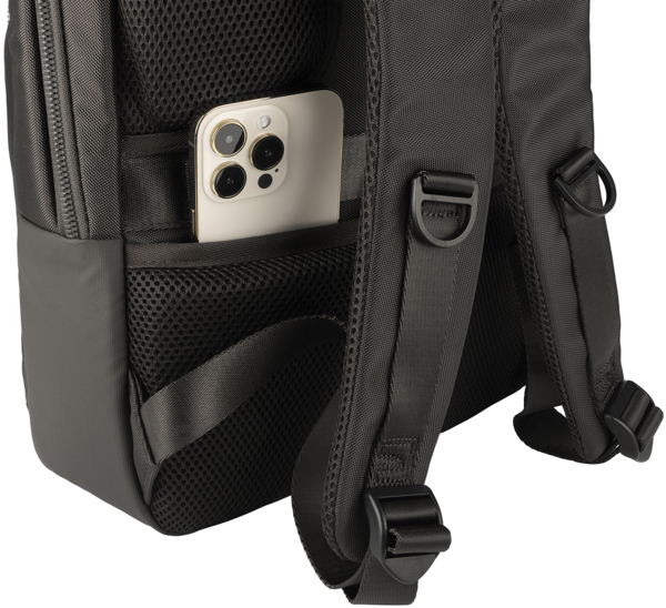 Дві організовані та місткі передні кишені для пляшки з водою, ручки, брелоки для ключів, мобільний телефон. Все організовано та легко знайти. Основне відділення із захисною кишенею для пристроїв розміром до 38x25x2,5 см та додаткову кишеню для аксесуарів, таких як зарядний пристрій та миша. Прихована захисна кишеня на спині для зберігання цінностей та вивезення їх легко.