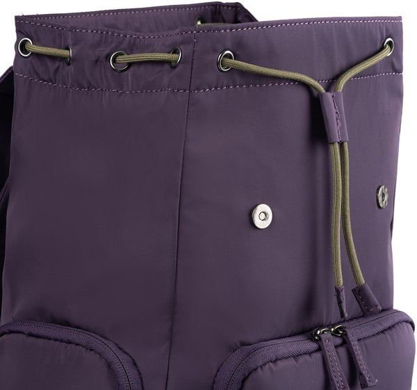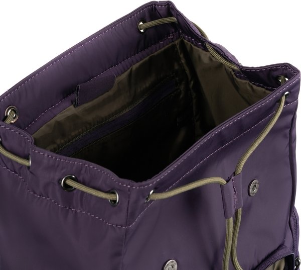 Невеликий легкий нейлоновий рюкзак із трьома місткими зовнішніми кишенями з лямками та ручкою. Підкладка та шнурок мають контрастний колір.