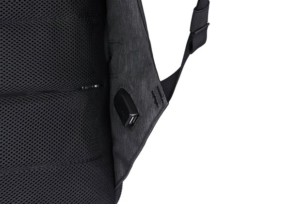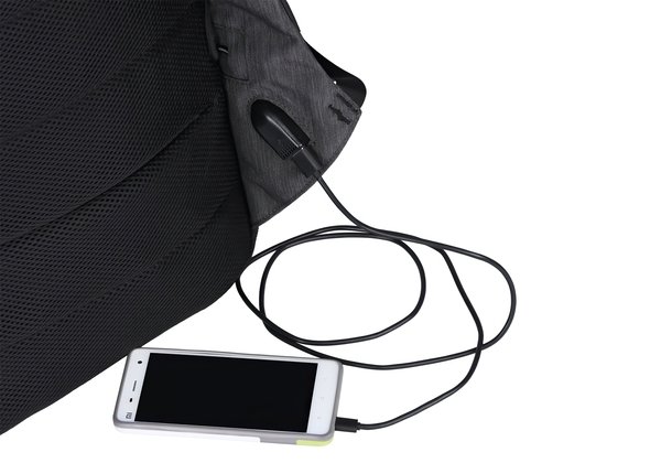 - у лівому плечовому ремені є кишеня для зберігання кабелю USB, а в підставі цього ж ременя на внутрішній частині знаходиться USB-роз'єм для підключення і зарядки телефону або планшета (попередньо потрібно вкласти ваш пауербанк в спеціальну кишеню всередині рюкзака і підключити його до кабелю. При підключенні пристрою яке необхідно зарядити, пауербанк сам включиться для зарядки).