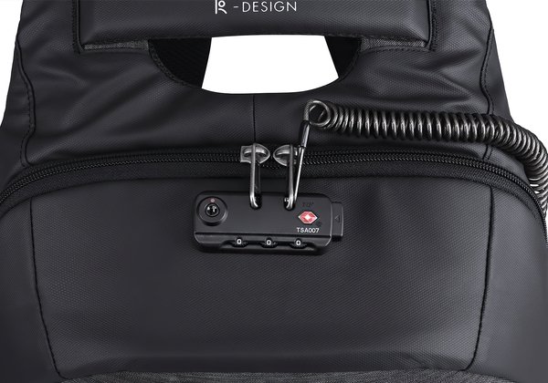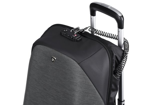 - Рюкзак оснащений вбудованим кодовим замком з функцією TSA, а так само спеціальним тросом який закривається в цей же вбудований замок.