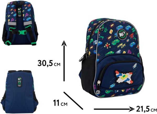 Yes K-34 – ідеальний рюкзачок для дошкільнят і знахідка для малечі! Ззовні рюкзачок нагадує іграшку, тому неодмінно сподобається дитині. Має одне основне відділення на блискавці, передню кишеню та дві бокові. Всередині передбачено дві додаткових відкритих кишеньки та одна кишенька на блискавці. Така організація внутрішнього простору допоможе розмістити речі необхідні у дитячому садочку та для відвідування підготовчих занять до школи. Рюкзак має ущільнену спинку та анатомічні S-подібної форми лямки, що забезпечать максимальний комфорт дитині. Нагрудний ремінь надійно зафіксує рюкзак на дитині та забезпечить рівномірне розподілення навантаження на спину. Світловідбиваючі елементи гарантують безпеку у темний час доби. Майбутні пілоти неодмінно вподобають дизайн рюкзака з прогумованим бейджем у формі шатла.