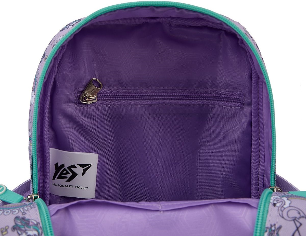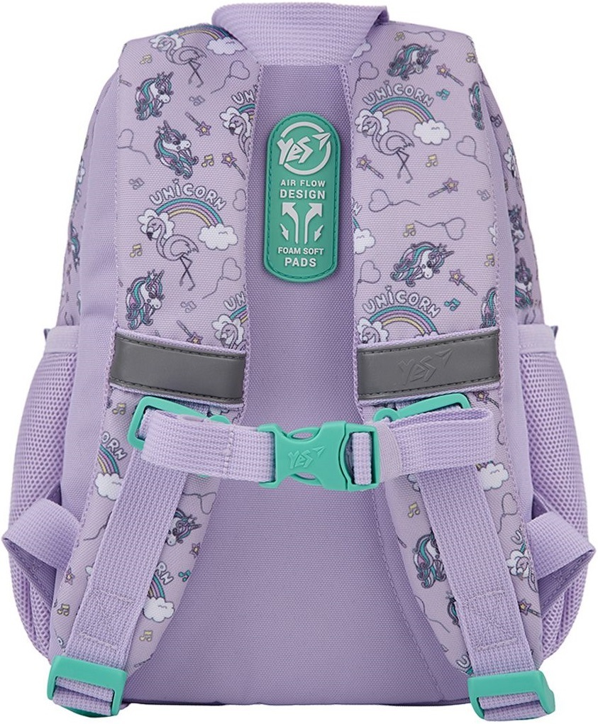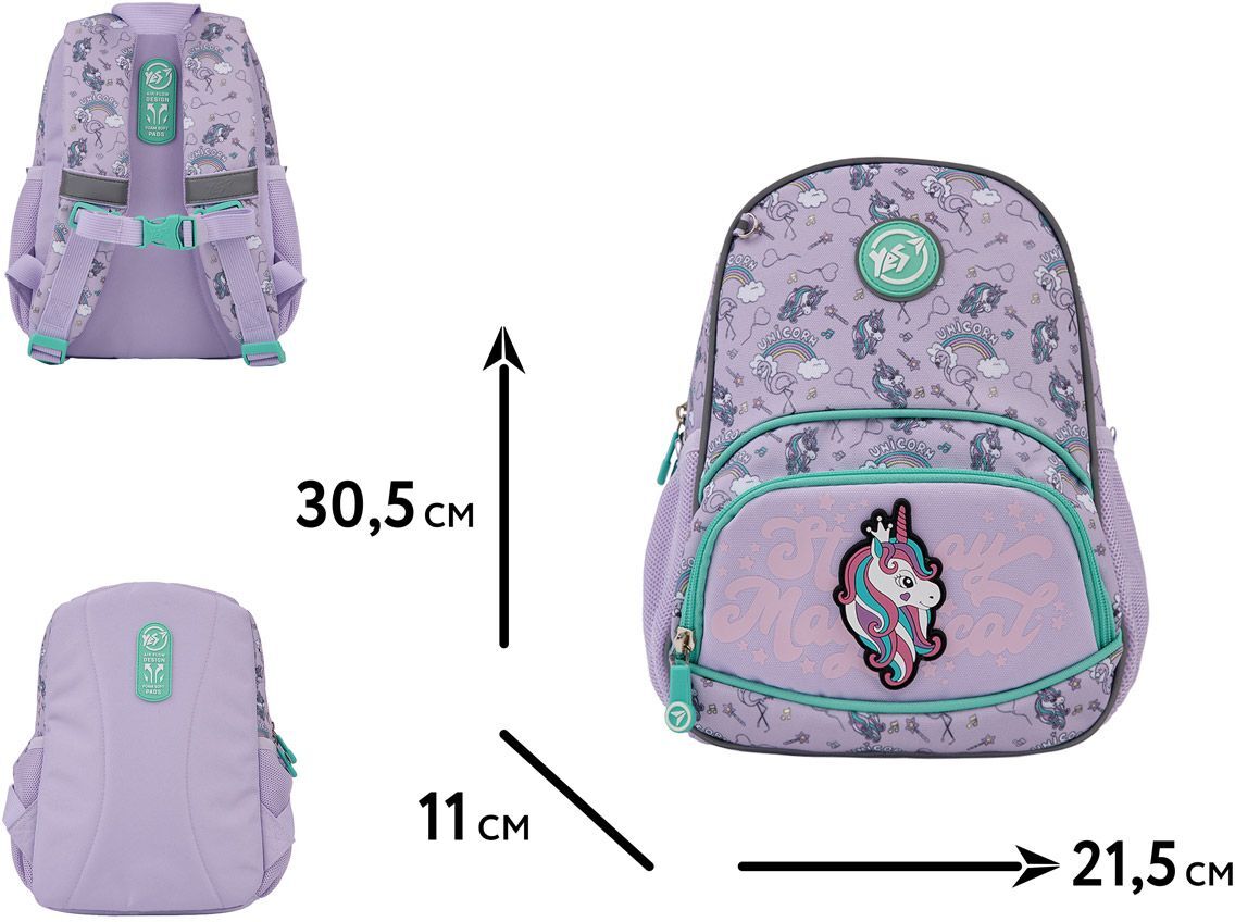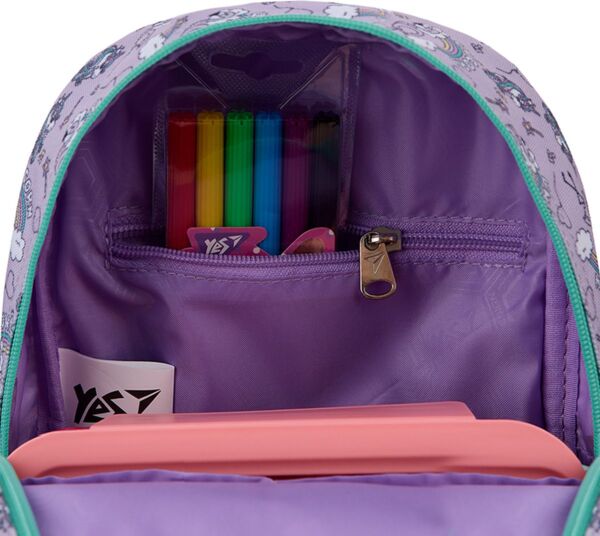 Yes K-34 – ідеальний рюкзачок для дошкільнят і знахідка для малечі! Ззовні рюкзачок нагадує іграшку, тому неодмінно сподобається дитині. Має одне основне відділення на блискавці, передню кишеню та дві бокові. Всередині передбачено дві додаткових відкритих кишеньки та одна кишенька на блискавці. Така організація внутрішнього простору допоможе розмістити речі необхідні у дитячому садочку та для відвідування підготовчих занять до школи. Рюкзак має ущільнену спинку та анатомічні S-подібної форми лямки, що забезпечать максимальний комфорт дитині. Нагрудний ремінь надійно зафіксує рюкзак на дитині та забезпечить рівномірне розподілення навантаження на спину. Світловідбиваючі елементи гарантують безпеку у темний час доби. Казковий персонаж одноріг, який втілює позитивні емоції, добро та радість, неодмінно приверне увагу дівчат.
