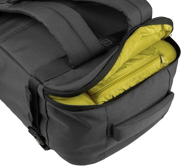 Міцний рюкзак, розроблений відповідно до максимальних розмірів, дозволених авіакомпаніями для ручної поклажі (IATA). Tugò ML має дві зручні кишені спереду, що ідеально підходять для зберігання дорожнього приладдя, і м'яке заднє відділення для захисту 17-дюймового ноутбука або 16-дюймового MacBook Pro; це забезпечує швидкий доступ до ноутбука та прискорює проходження контролю безпеки в аеропорту. Об'єм основного відділення складає більше 28,5 літрів, і воно ідеально підходить для зберігання всіх необхідних для подорожі речей. Застібки-блискавки головного відділення також сумісні з підвісним замком, тому ви завжди можете бути впевнені в збереженні свого вмісту. Рюкзак доповнюють чотири регульовані лямки з боків, нагрудний ремінь та дві міцні ручки, які допоможуть розмістити рюкзак у верхніх відділеннях літаків та поїздів.