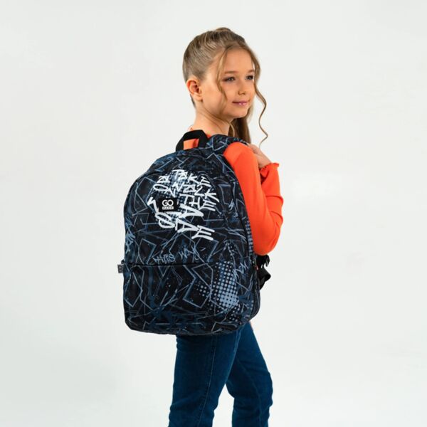 GoPack GO25-188 — справжній маст-хев для підлітків та молоді! Легкий та комфортний рюкзак для школярів, студентів та шукачів пригод у міських джунглях! Виглядає круто, тримає форму й завжди готовий до активного розпорядку дня. Одне велике відділення, де поміститься все від гаджетів до перекусів, плюс окрема кишеня для ноутбука — для тих, хто не зупиняється ні на мить. Прихована кишеня на спинці для особливих скарбів. Це більше, ніж просто рюкзак — це стильна і функціональна "база", що завжди поруч! Сучасний принт з родзинкою: виразний, щоб привернути увагу, і водночас універсальний, щоб підійти для будь-якого повсякденного стилю. Рюкзак, що стане улюбленим компаньйоном у будь-яких справах.