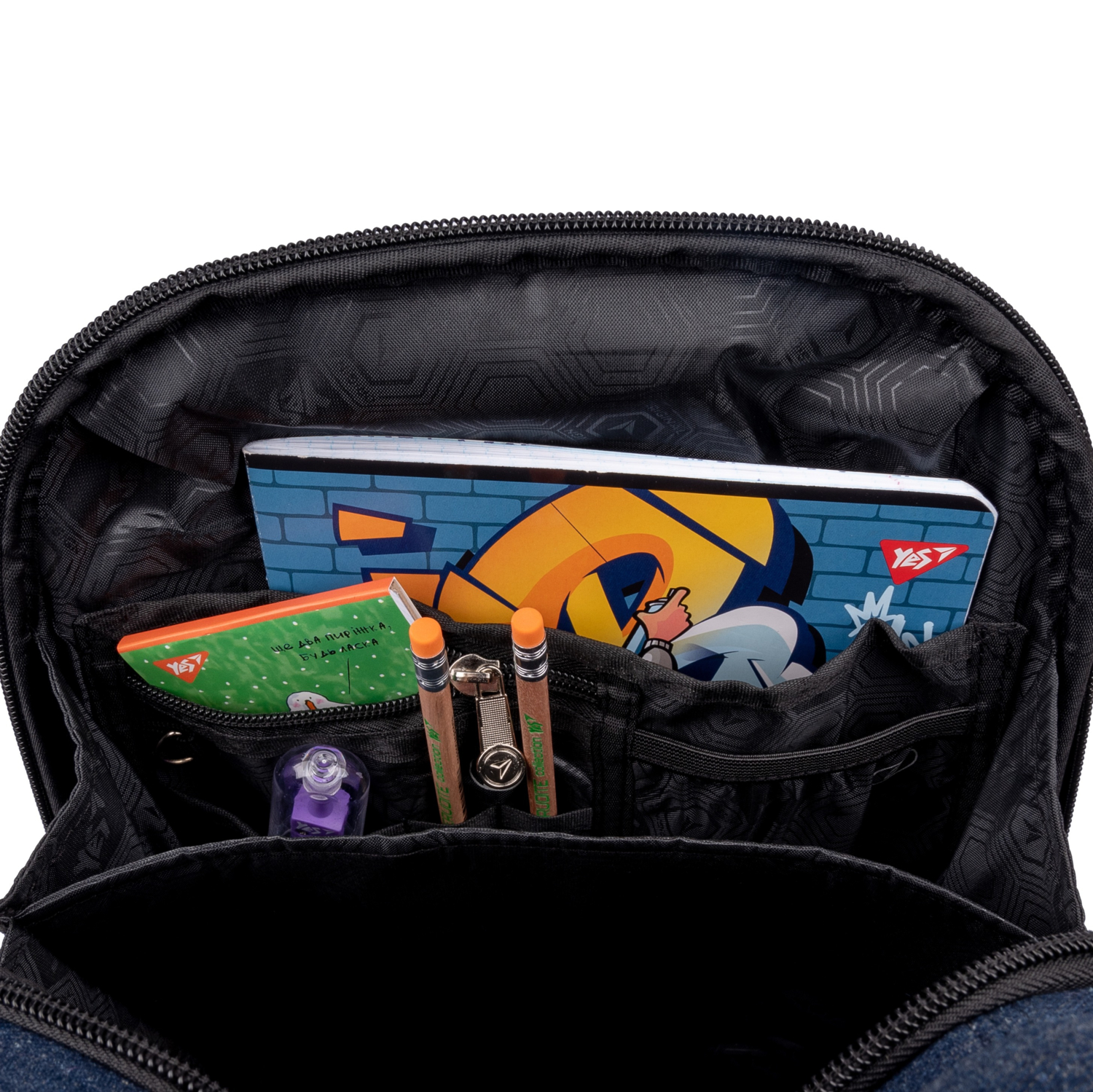 Модель H-100 торгової марки YES ідеальна для першокласника! Передня панель виконана у вигляді «панцира», який не деформується при легкому тиску, зберігаючи форму навіть при нерівномірному завантаженні рюкзака. «Панцир» виконаний з щільного EVA-матеріалу, покритий тканиною поліестер.