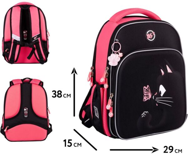 Шкільний каркасний рюкзак Yes S-78 з ортопедичною спинкою - це оптимальна модель для дітей молодшого шкільного віку. Виготовлений з легкого, але дуже міцного EVA матеріалу, який відзначається високою стійкістю до зношування та забезпечує надійний захист вмісту рюкзака. Його оптимальна конструкція здобула визнання батьків за комфорт і зручність у використанні, а дітей – за стильний дизайн. Зручні та практичні відділення дозволяють розміщувати підручники або зошити формату A4 без ризику їх пошкодження, а внутрішній органайзер надає можливість тримати шкільне приладдя у порядку. Милий принт кошеня з метеликом на носі на шкільному рюкзаку Yes S-78 подарує чарівні відчуття безтурботності. А брелок-лапка як мінісумочка дозволить швидко діставати необхідні дрібниці.