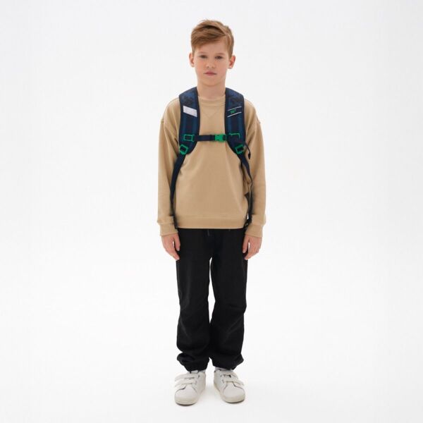 - Нагрудний ремінь з регулюванням по висоті для надійної фіксації рюкзака на спині дитини.