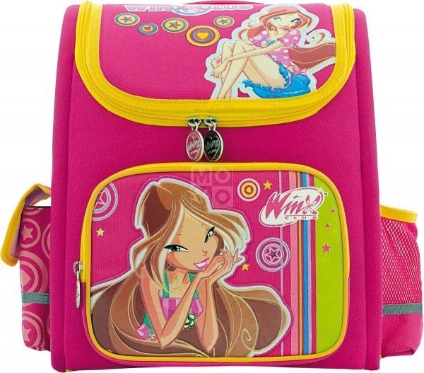 Відмінний шкільний рюкзака з відмінно продуманою конструкцією від ТМ "1 Вересня". Ранець яскравого забарвлення з персонажем "Вінкс" з мультфільму без сумніву не залишить байдужим жодну дитину. Ранець рекомендований Українською асоціацією ортопедів-травматологів. Ранець має форму жорсткого короба. Ортопедична спинка створює максимальний комфорт при носінні. Широкі амортизуючі плечові лямки? в формі "маєчки". Поперечний ремінь для фіксації в районі пояса. Розклад уроків. Подвійний шов в формотворчих швах ранця, що значно підвищує надійність і термін експлуатації рюкзака. Світловідбиваючі елементи на поверхні ранця, що забезпечує безпеку дитини на дорозі в темну пору доби. Містке основне відділення на блискавці. Два накладних кишені на блискавці на лицьовій стороні портфеля. Два додатковий накладних кишені на бічних поверхнях ранця (один з який на блискавки, інший відкритий сітчастий). На дні ранця присутні ніжки