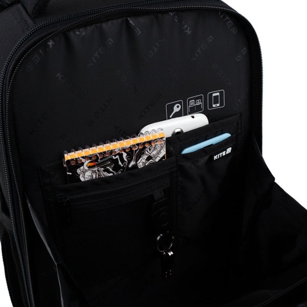 - Кишеня для телефону, знімний затискач для ключів і органайзер для канцелярського приладдя.