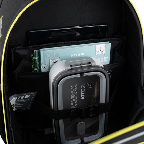 - Внутрішні роздільники для підручників та зошитів з еластичним фіксатором: допомагають гарно впорядкувати шкільне приладдя та правильно збалансувати вагу.