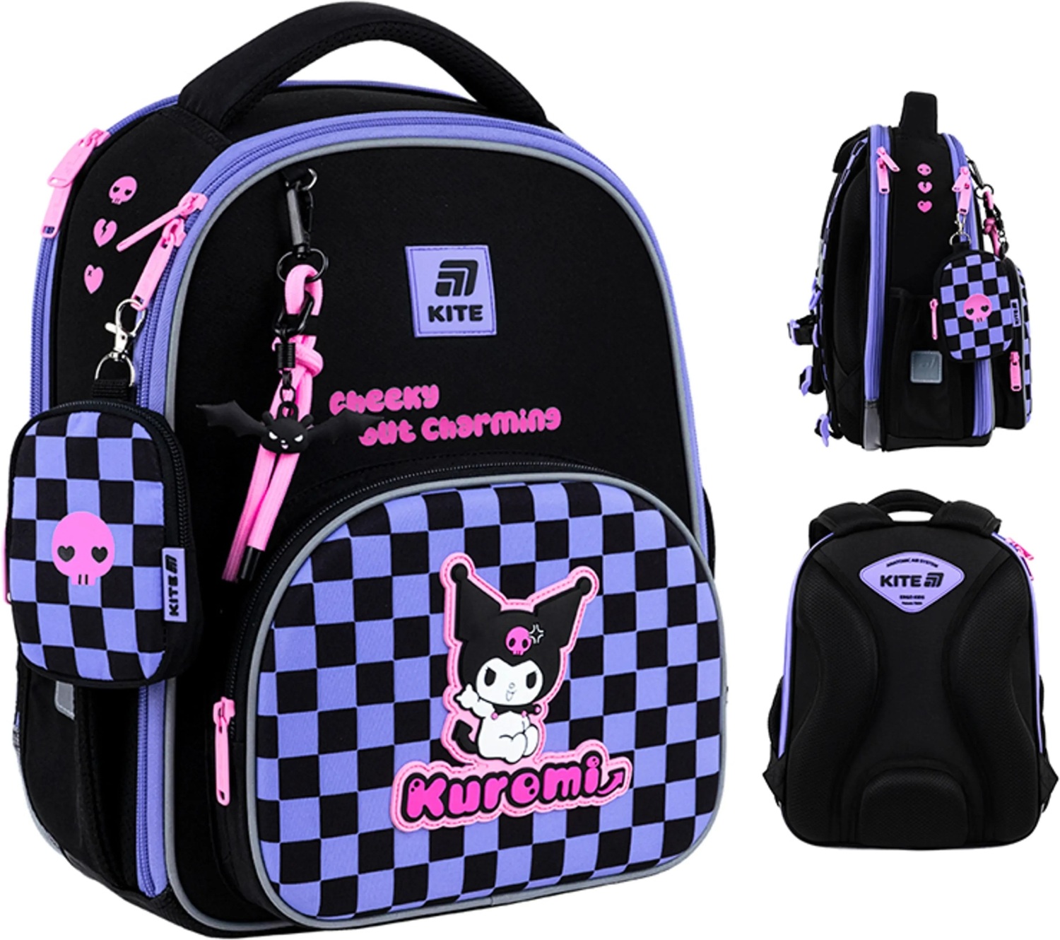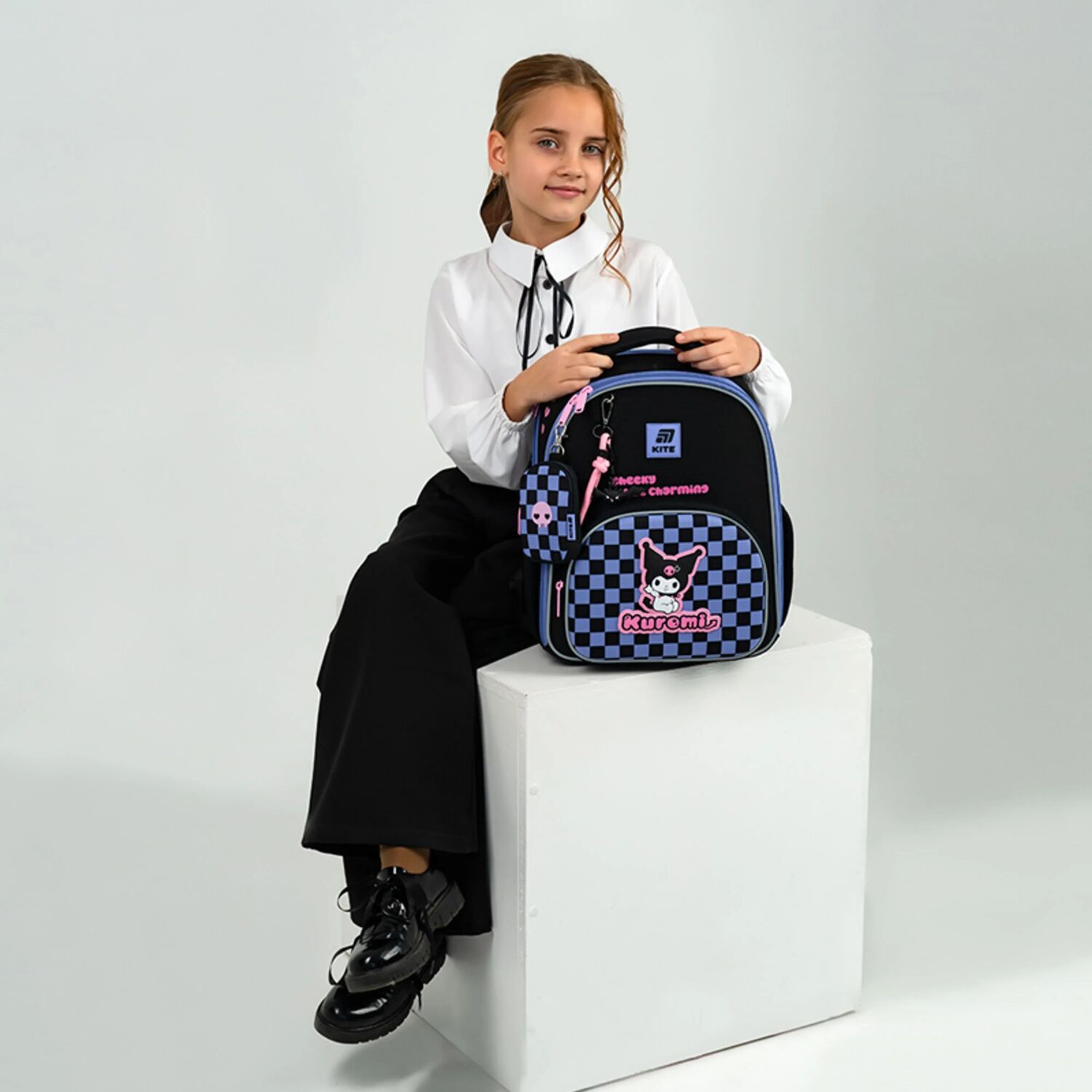 Ортопедичний рюкзак Kite HK25-556M – містка та стильна каркасна модель для початкової школи. Підходить для учнів зростом від 130 см до 145 см. Запатентована ортопедична спинка Ergo Kids з м’якими подушками з повітропроникного матеріалу піклується про здоров’я хребта та робить носіння рюкзака комфортним. Спинка щільно прилягає та рівномірно розподіляє вагу по всій спині, що знижує навантаження на суглоби. Стильний дизайн в улюбленій дитячій ліцензії Kuromi надихатиме вчитися із задоволенням. До цієї моделі бездоганно підходить пенал HK25-623 та сумка для взуття HK25-601M-4 у цьому ж дизайні.