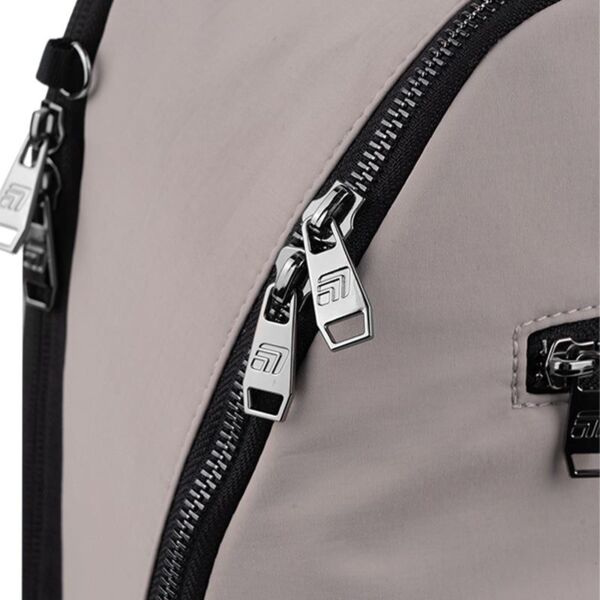 Лаконічний дизайн і вишукана стриманість підкреслена металевими блискавками, які надають моделі особливого характеру. Компактний та місткий, цей наплічник стане вірним супутником у місті та в шкільних коридорах. Наявність лямки для кріплення на валізі та потайної кишені робить модель незамінною для подорожей. Завдяки своїй універсальній та врівноваженій естетиці, наплічник вдало доповнить кожний образ.