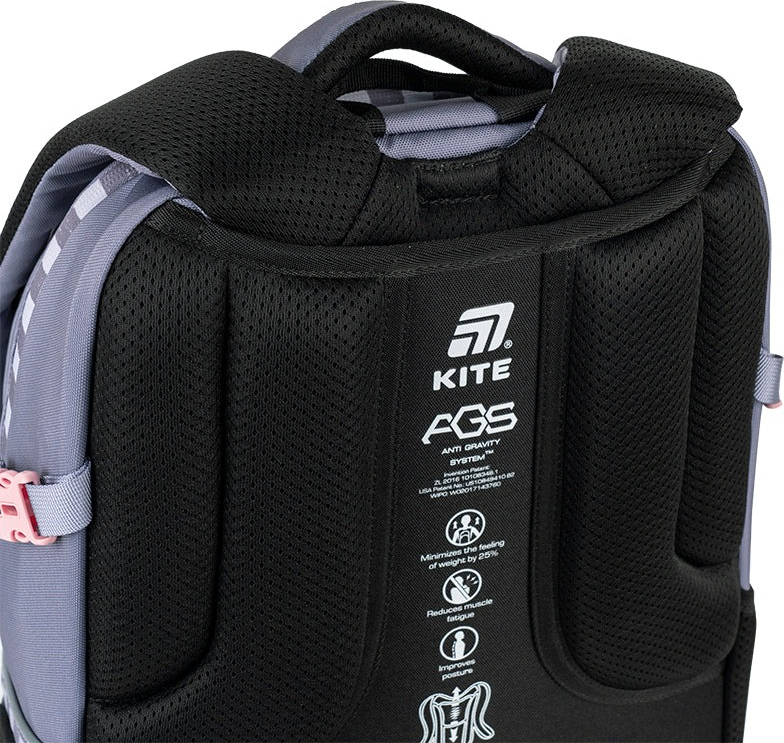 Шкільний рюкзак Kite — унікальна модель з інноваційною спинкою Anti Gravity System (AGS). Рюкзак пружинить під час ходьби, подібно до принципу роботи пневмопідвіски у машині: вага вмісту рюкзака відчувається на 25% легшою. Сприяє підтримці правильної постави та відчутно знижує втому. Особливо актуально для школярів та студентів, які носять з собою велику кількість підручників. Ортопедична конструкція забезпечує максимальний комфорт та сприяє підтримці правильної постави. Модель схвалена німецьким Інститутом Здоров'я та Ергономіки IGR. Рекомендована для підлітків від 12 років та дорослих, зростом від 145 см. Кріплення для борда допомагає звільнити руки та насолоджуватися максимальною свободою та легкістю. На них можна зафіксувати як дошку для катання, так і одяг. За допомогою бічних стяжок зручно регулювати об’єм рюкзака: збільшувати чи зменшувати його за потреби. Подарунок до рюкзака – модний шнурок для телефона.