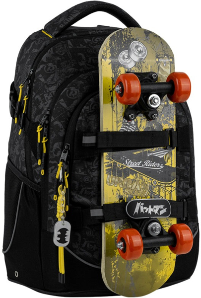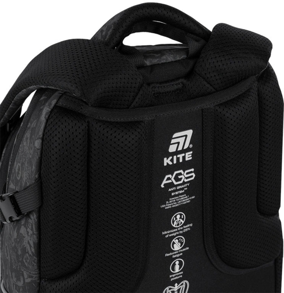Шкільний рюкзак Kite DC25-727M — унікальна модель з інноваційною спинкою Anti Gravity System (AGS). Рюкзак пружинить під час ходьби, подібно до принципу роботи пневмопідвіски в машині: вага вмісту рюкзака відчувається на 25% легшою. Сприяє підтримці правильної постави і відчутно знижує втому. Особливо актуально для школярів, які носять з собою велику кількість підручників. Ортопедична конструкція забезпечує максимальний комфорт і сприяє підтримці правильної постави. Модель схвалена німецьким Інститутом здоров'я та ергономіки IGR, адаптована під вікові та фізичні особливості школярів. Рекомендована для дітей у віці від 9-12 років і зростом від 130 см. Кріплення для дошки допомагає звільнити руки і насолоджуватися максимальною свободою і легкістю. На них можна зафіксувати як дошку для катання, так і верхній одяг. За допомогою бічних стяжок зручно регулювати об'єм рюкзака: збільшувати або зменшувати його в міру необхідності. Подарунок до рюкзака – модний шнурок для телефону.