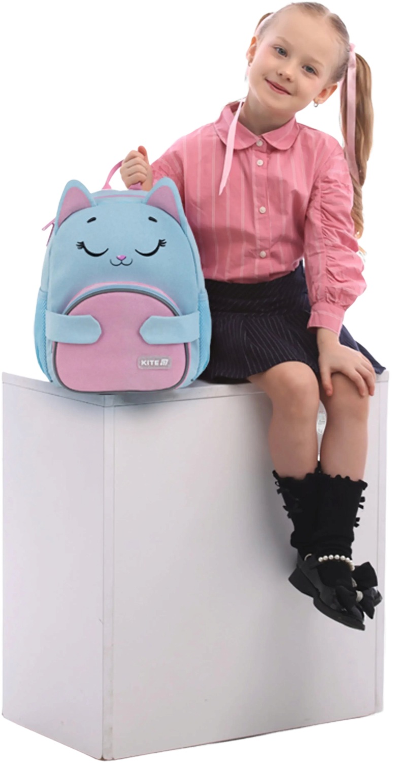 Чудовий вибір для підготовчих занять, секцій та прогулянок. Модель також підходить для першокласників, як зручний додатковий рюкзак для позашкільних занять. Він виконаний у формі милого котика з об'ємними вушками. Мурчик мрійливо примружив очі та склав лапки на пузику-кишеньці. Це дивовижно цікаво та зручно: лапки на магнітах легко відкриваються та вмить звільняють доступ до об’ємної передньої кишені.
