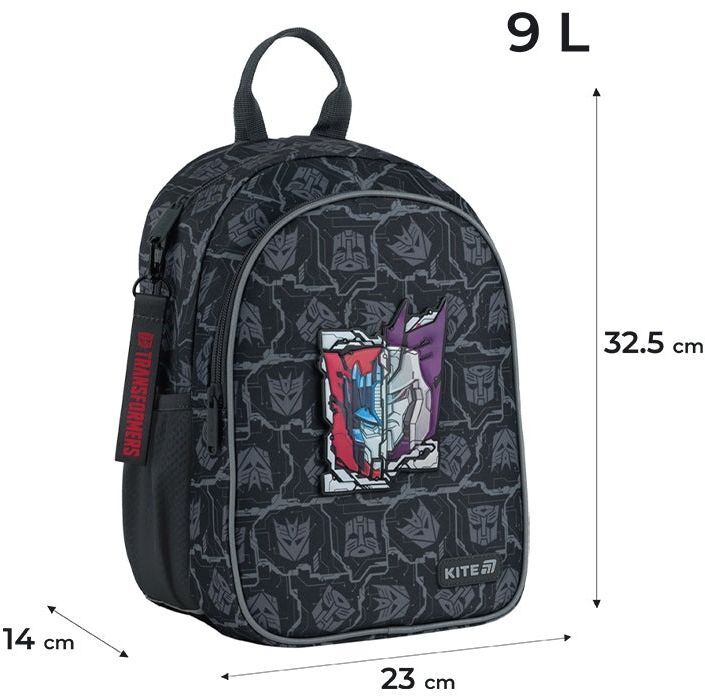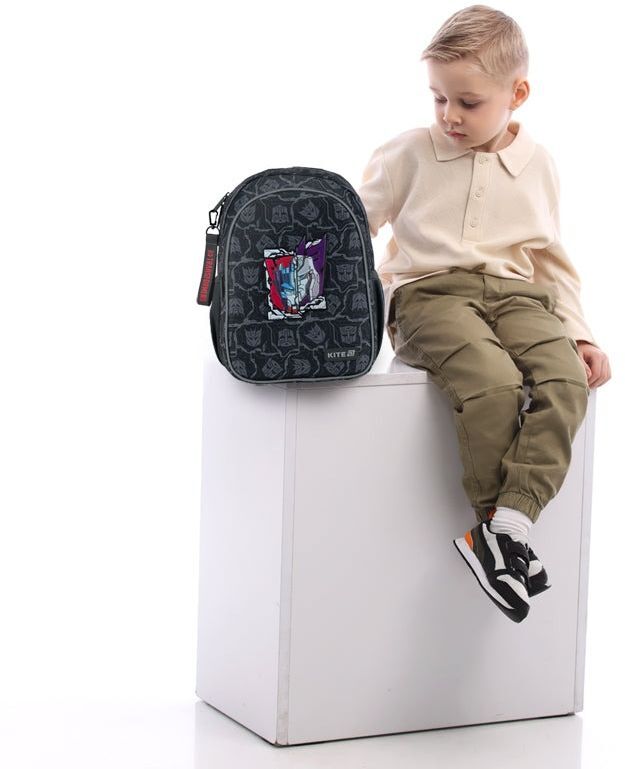 Рюкзак для дошкільнят Kite Kids TF25-2735XS - ідеальний аксесуар для маленьких дослідників, які ходять до дитячого садочку чи починають відвідувати підготовчі заняття. Рюкзак вирізняється своєю компактністю, легкістю та зручністю, тому стане чудовим помічником у повсякденних справах дитини. Легенький рюкзачок зручно носити, він комфортно відчувається і не обмежує рухи малюка. Його можна брати із собою на гуртки, заняття або прогулянки. Продумана організація простору дозволяє акуратно розмістити всі необхідні речі – від пляшечки з водою до улюблених іграшок та зошитів. Висока якість матеріалів гарантує, що рюкзак готовий до активного використання. Тканина міцна, легка та зносостійка, а блискавки працюють плавно та надійно. Модель зберігатиме свій первісний вигляд протягом тривалого часу. Поєднання різних приємних на дотик фактур захоплює дитину і робить знайомство з рюкзаком ще цікавішим. Рюкзак у ліцензійному дизайні Transformers подарує радість та натхнення. Фішка цього рюкзака - нашивка з липучкою, яка дає можливість легко змінювати його дизайн під настрій. Бейджі кріпляться на липучку, що дозволяє швидко кастомізувати рюкзак у будь-якому стилі.