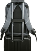 - Зручна спинка має еластичний ремінь для фіксації рюкзака на ручці валізи. Модель обладнана м’якою ручкою та ручкою-петлею;