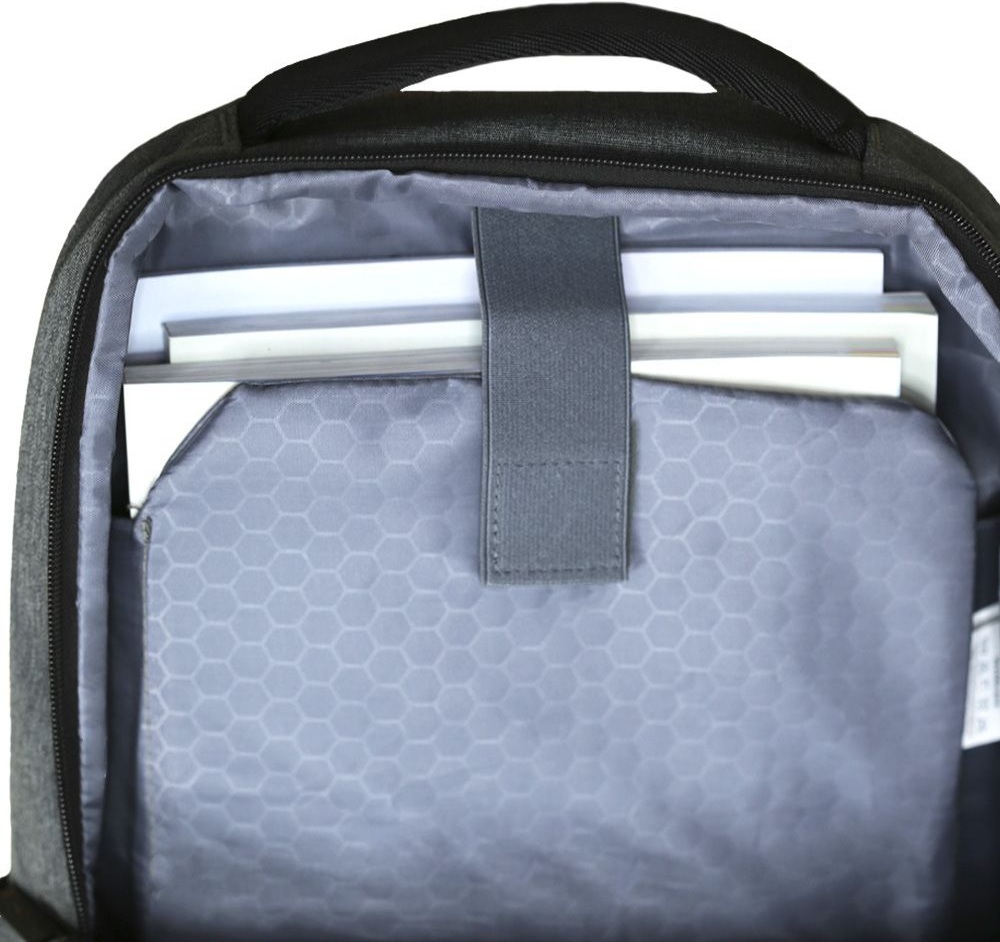 - Спеціальне відділення з м'якою підкладкою для ноутбука до 16 дюймів з фіксуючою стрічкою — безпека гаджетів у будь-яких умовах. В середині основне відділення обладнане додатковими кишенями для телефона та інших предметів.