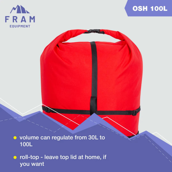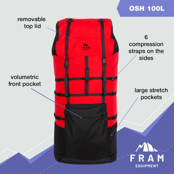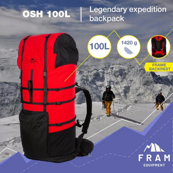 Ультралегкий експедиційний рюкзак Fram Equipment Osh 100L. Безкаркасний рюкзак, який підійде як для довгих експедицій, так і для походів. Завдяки використаним матеріалам, у ньому відмінно поєднуються висока зносостійкість і мала вага.