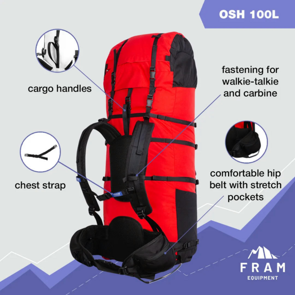 - Рюкзак Fram Osh 100L S червоний-чорний