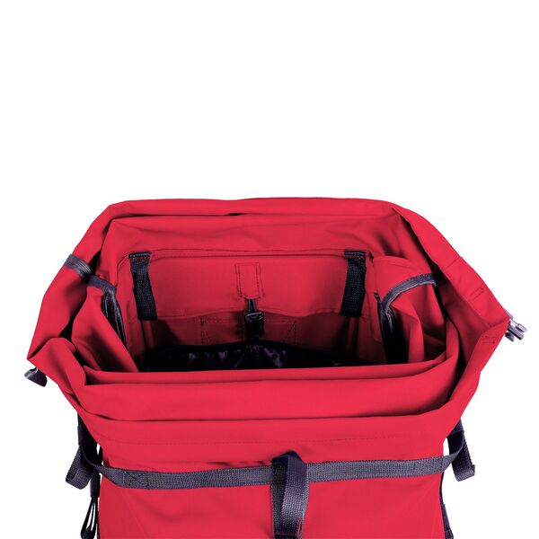 Рюкзак закривається на ролл-топ. В поєднанні з бічними стяжками це дозволяє регулювати об’єм рюкзака від 30л до 85л.