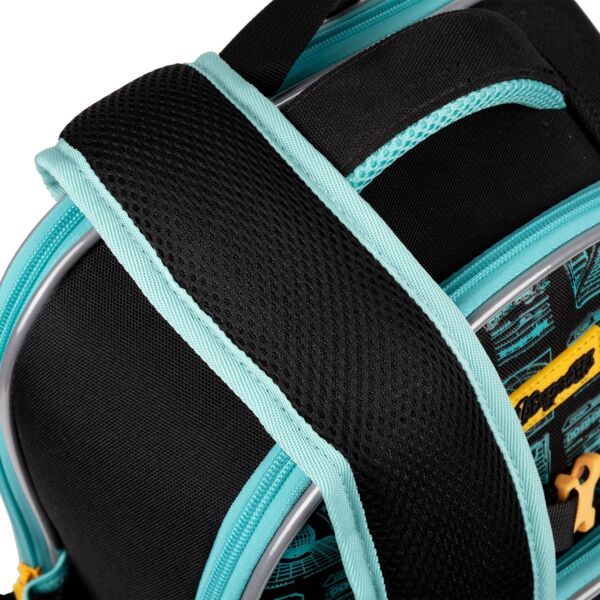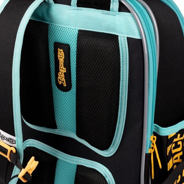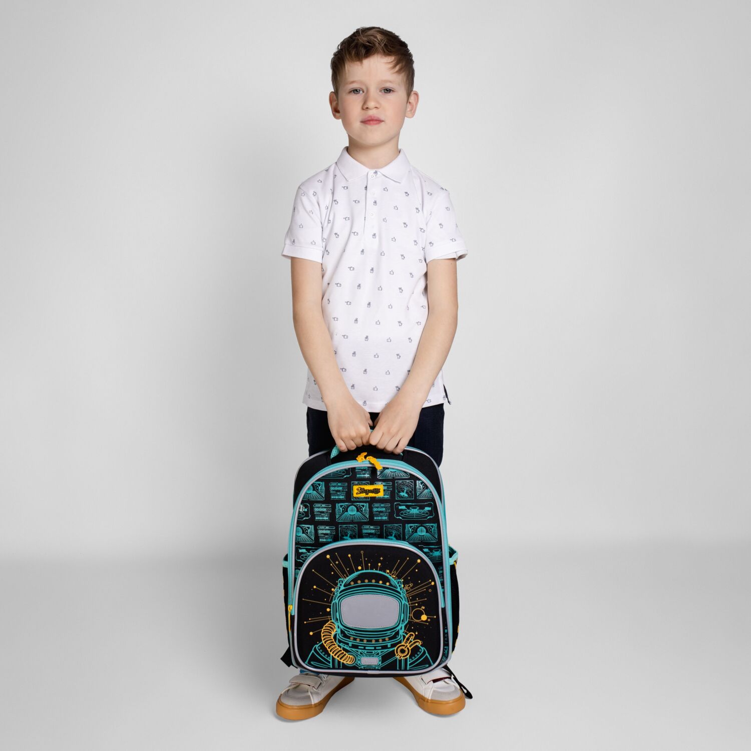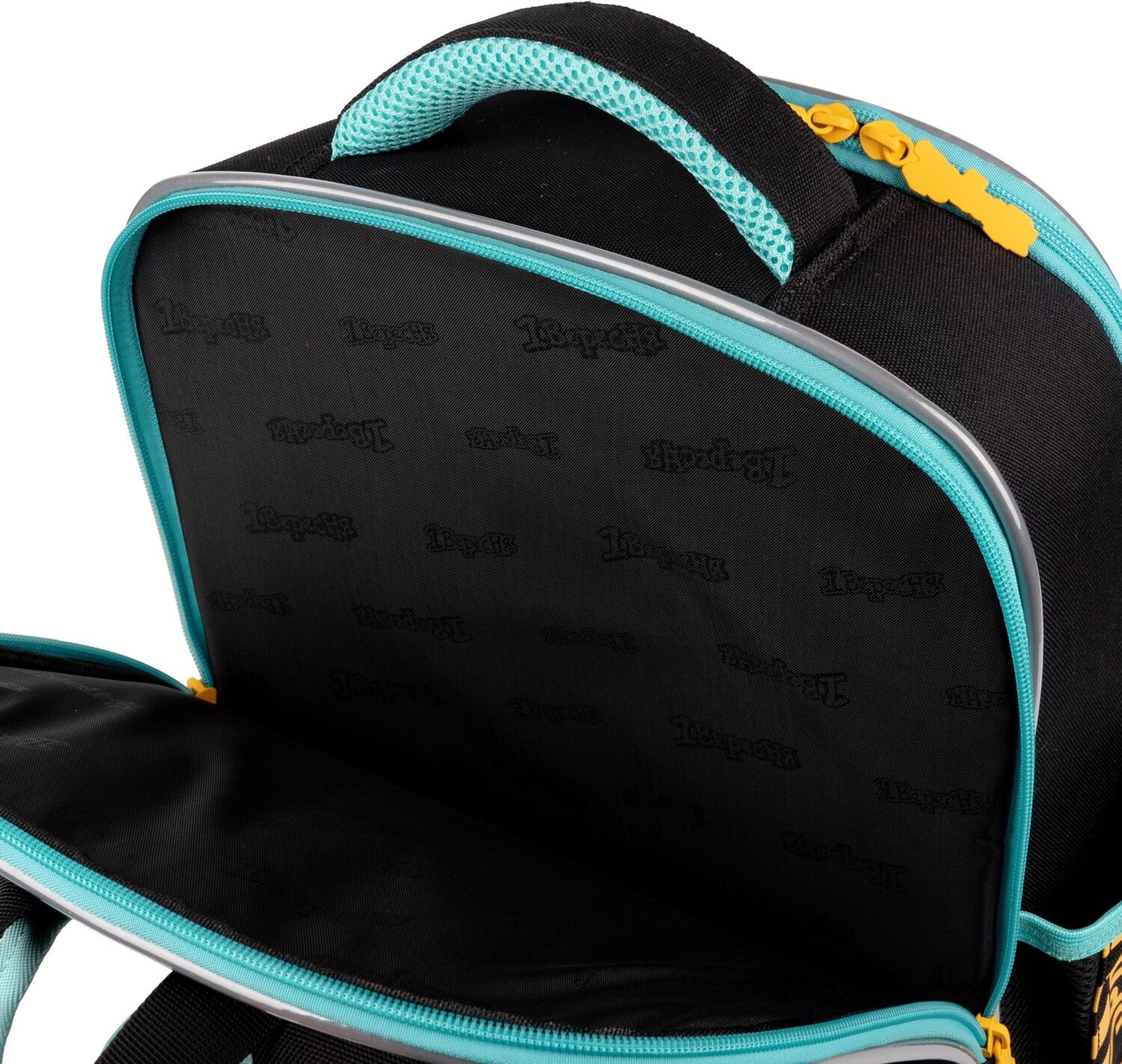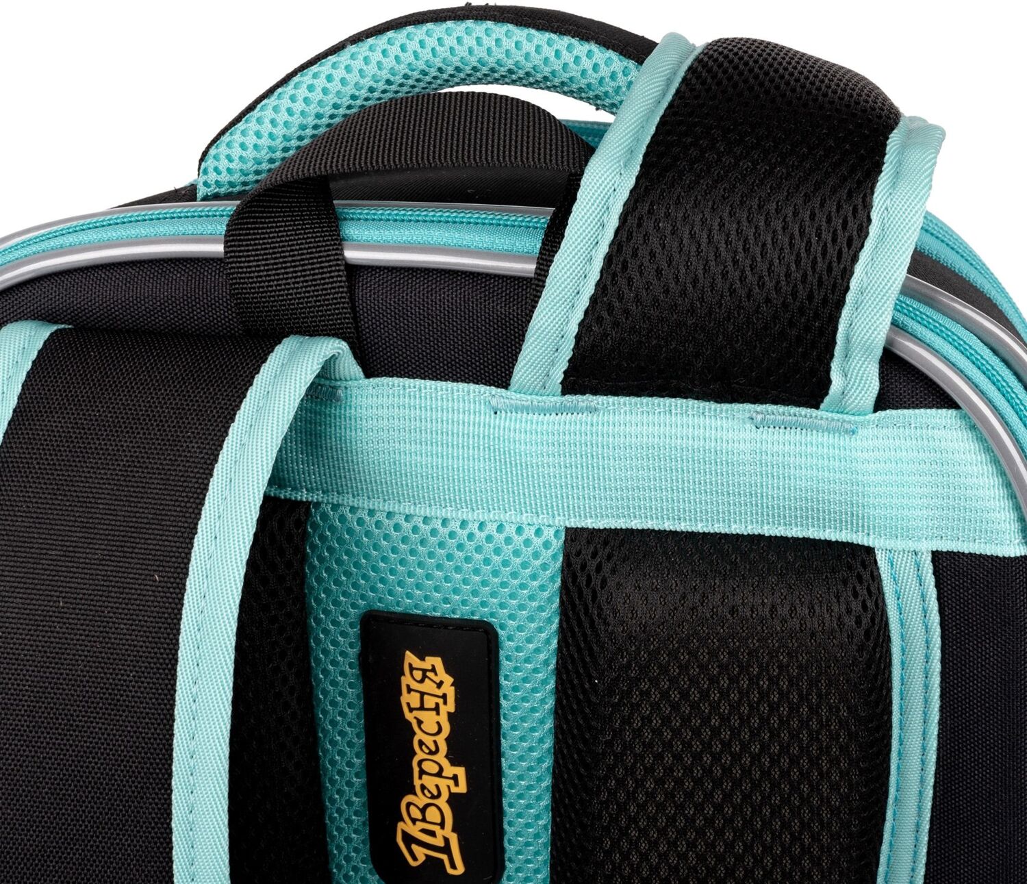 Компактна та містка модель S-97 торгової марки 1Вересня має м'який ущільнений корпус, який добре тримає форму і при цьому зберігає гнучкість. Спинка жорстка та міцна. Передня кишеня виконана з EVA матеріалу. Модель розроблена для дітей молодшого шкільного віку з урахуванням усіх вимог цієї вікової категорії.