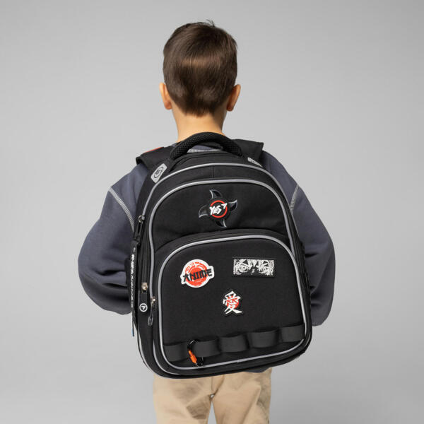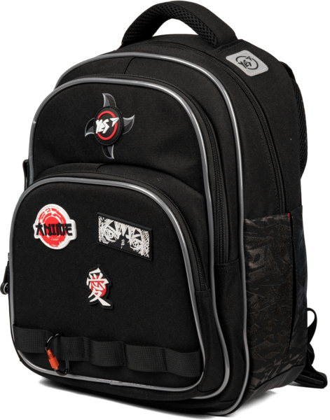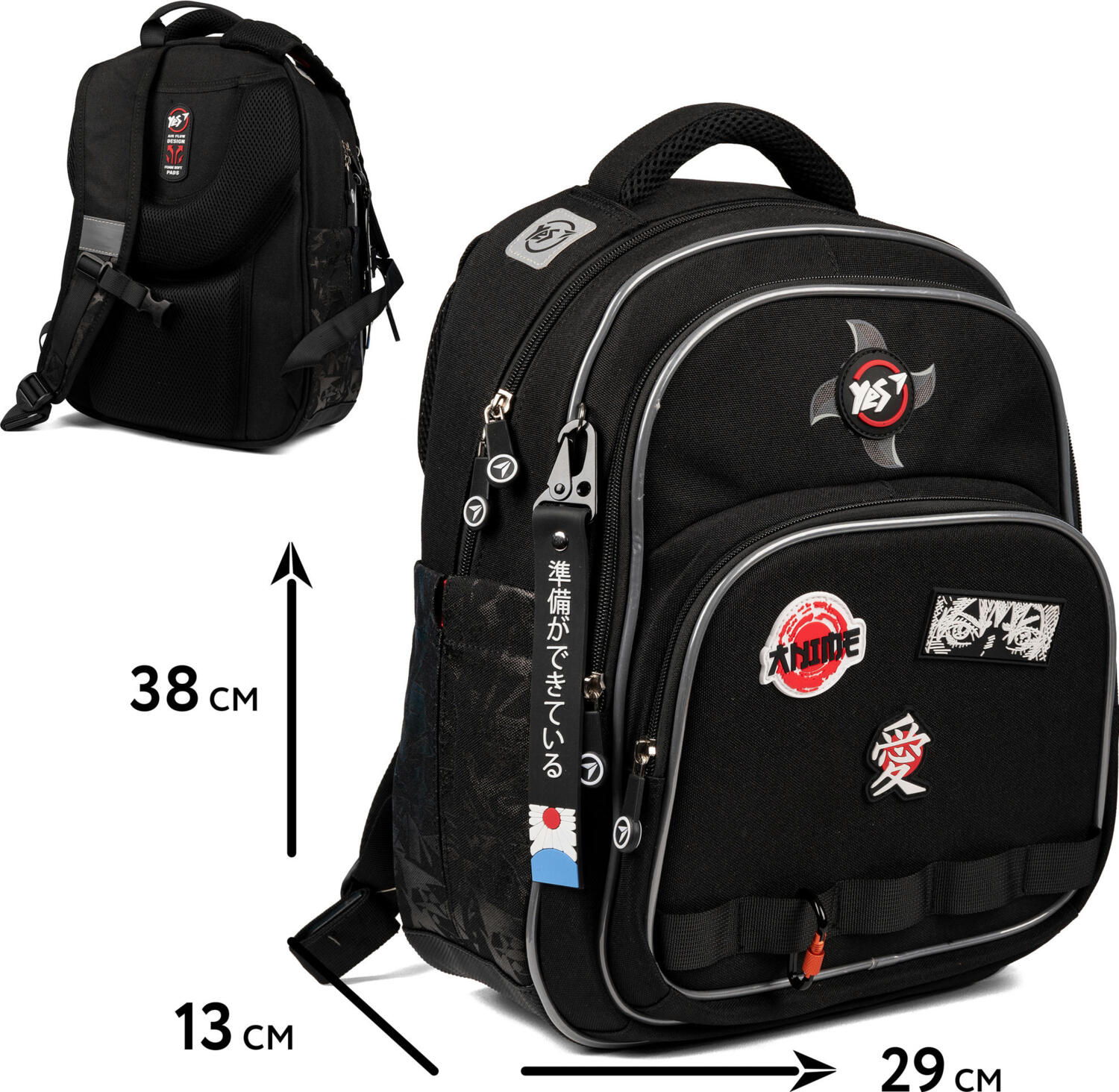 Рюкзак також оснащений масажними EVA-лямками анатомічної форми, які не тиснуть на плечі, завдяки чому дитина почувається дуже комфортно. Зовнішні бокові кишені, внутрішні відділення та органайзер дозволяють зручно розмістити все необхідне для школи. Модель Yes Samurai S-91 — це ексклюзивний рюкзак, що поєднує самурайський стиль з практичністю для щоденного використання. Прогумовані бейджі та оригінальна підвіска неодмінно сподобаються хлопцям.
