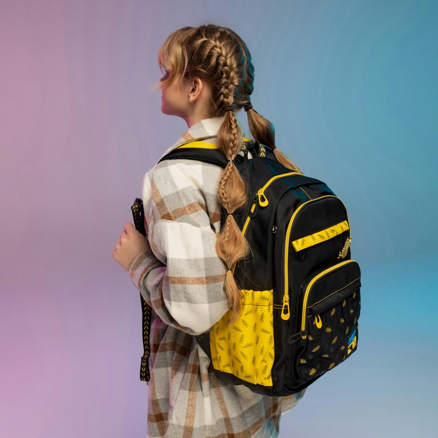 - 3 просторі передні кишені для шкільного приладдя, пеналу та інших речей невеликого розміру.