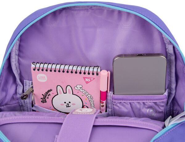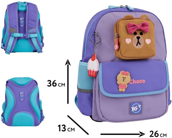 Шкільний ортопедичний рюкзак S-104 - це мініатюрна та м’яка модель без будь-якого обтяження конструктиву надмірним функціоналом. Цей рюкзак має одне просторе відділення, ортопедичну спинку, конструктив якої затверджений патентом. Анатомічні S-подібної форми плечові ремені регулюються за довжиною, тому забезпечать комфортне розташування рюкзака на малечі. Нагрудний ремінь допоможе надійно зафіксувати рюкзак на дитині. Зручні прогумовані пулери з металевою основою слугуватимуть довго в активному житті власника рюкзака. Внутрішній органайзер шкільного рюкзака S-104 розроблений спеціально для потреб діточок у молодшій школі. Рюкзак має кишеню для шкільного бейджа, ключницю-пружинку для надійного збереження ключів, а також кишені для гаджетів з флісовою м’якою підкладкою. Юні школярі все ще обожнюють мультфільми, і тому їхній вибір часто зупиняється на рюкзаках із зображенням улюблених персонажів. Рюкзак Yes S-104 Line Friends Pretty Choco не тільки внесе яскраві емоції в кожен день, але й подарує відчуття підтримки, адже улюблена Choco буде поруч, супроводжуючи свою власницю у всіх шкільних пригодах.