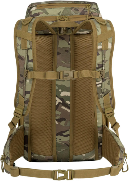 Highlander Eagle 2 Backpack 30L Hmtc (TT193-HC) - місткий і надійний рюкзак для щоденного носіння. Модель виготовлена із міцного водостійкого поліестеру 600D Xtp із поліуретановим покриттям, має систему кріплень Molle, велике відділення на блискавках для зберігання спорядження в польових умовах, а також фронтальну та дві еластичні бічні кишені. М'яка спинка, компресійні ремені та ручка для перенесення роблять цей рюкзак зручним для користування. Регульовані лямки з м’якими підкладками та регульований поясний ремінь розподіляють навантаження, щоб забезпечити Вам комфорт під час щоденного носіння. Все це гарантує, що даний рюкзак витримає тривалу експлуатацію.